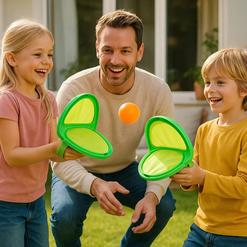 Šis linksmas gaudymo kamuoliuko žaidimas puikiai tinka vaikams, kurie mėgsta judėti, žaisti ir išbandyti naujas veiklas. Žaisdami jie lavina reakciją, koordinaciją ir bendradarbiavimo įgūdžius – ir visa tai kartu su daugybe juoko ir pramogų. Idealiai tinka sodui, parkui ar bet kuriai atvirai erdvei – garantuoja valandas smagaus žaidimo!