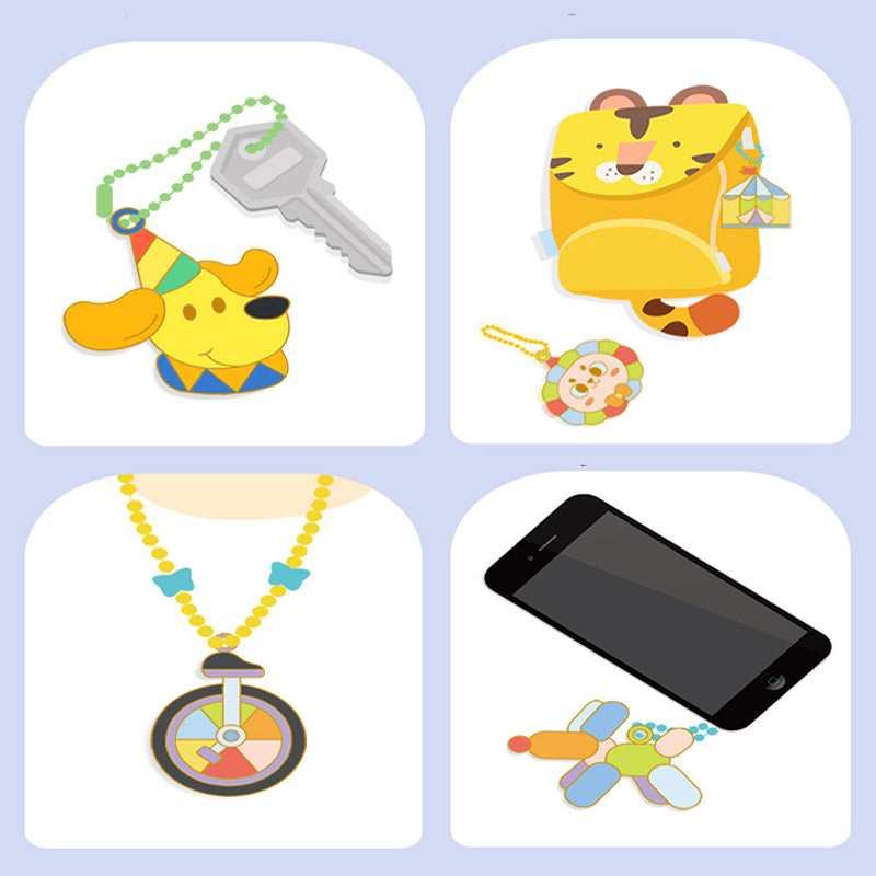Puikiai tinka mažiems kūrėjams. Užpildykite formelę spalvomis, palikite išdžiūti ir prisegkite grandinėlę. Tai lengvas ir įtraukiantis būdas lavinti kūrybinį pasitikėjimą.