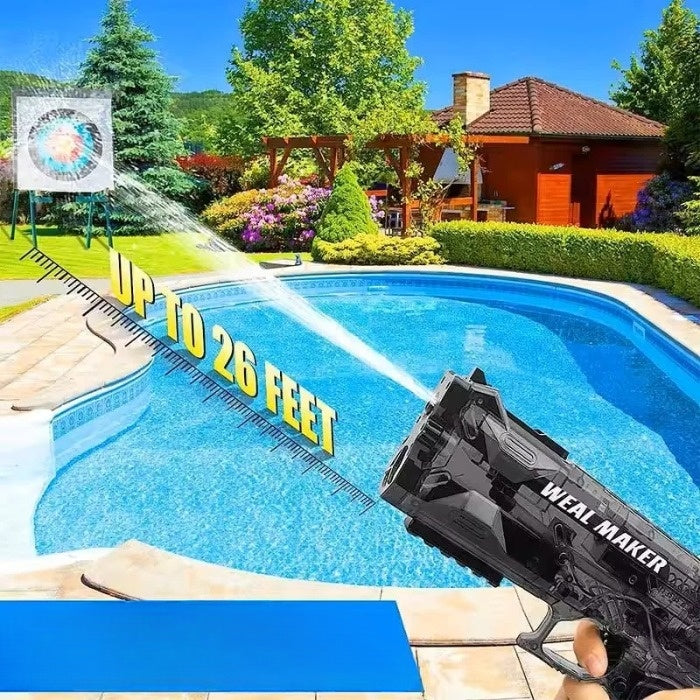 Su mūsų ilgų nuotolių elektriniu vandens pistoletu mėgaukis nenutrūkstamu šaudymu ir lengvai pasiek taikinius iš toli! Tai tikras vasaros ginklas, sukurtas pergalei. ⚡