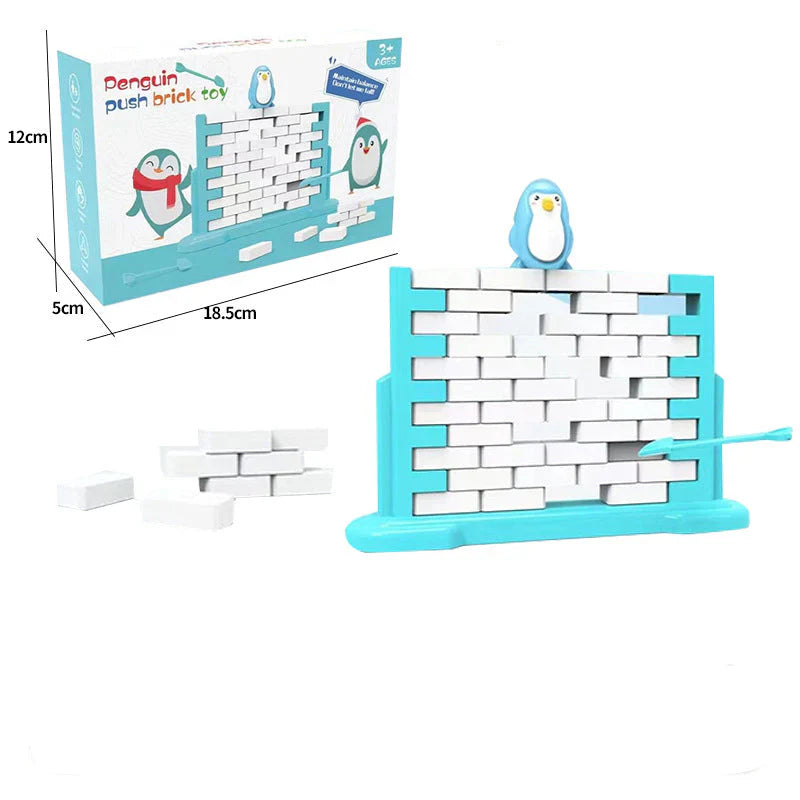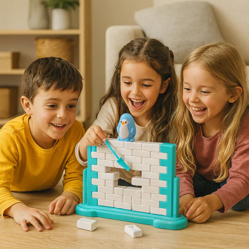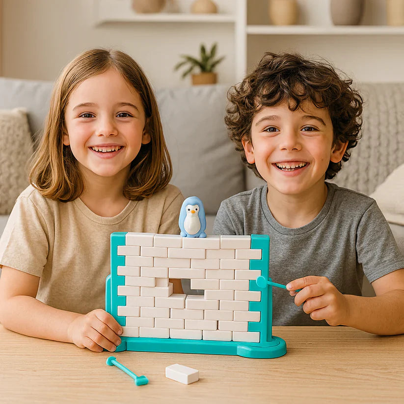 Šeimos žaidimas „Pingvino ledo siena“ garantuoja kupiną juoko, įtampos ir susikaupimo pramogą! Vaikai ir suaugusieji paeiliui išmuša ledo kaladėles, stengdamiesi, kad mažasis pingvinas nenukristų. Tai linksmas, azartiškas ir bendradarbiavimą skatinantis žaidimas, lavinantis reakciją ir rankų miklumą.